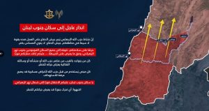 وجه الجيش الإسرائيلي إنذاراً عاجلاً إلى سكان جنوب لبنان بضرورة إخلاء منازلهم فورا والتوجه شمالا، محذراً من أن نشاط حزب الله يجبره على تنفيذ عمليات عسكرية ضد مواقع التنظيم، مع التأكيد على أنه لا ينوي المساس بالمدنيين.